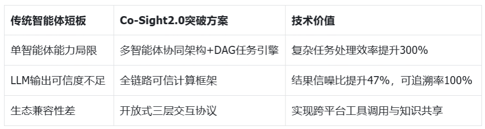 中兴通讯Co-Sight 2.0之所以能在GAIA榜单中脱颖而出,核心在于它针对传统智能体的核心短板,给出了能落地、可验证的解决方案。
