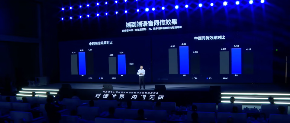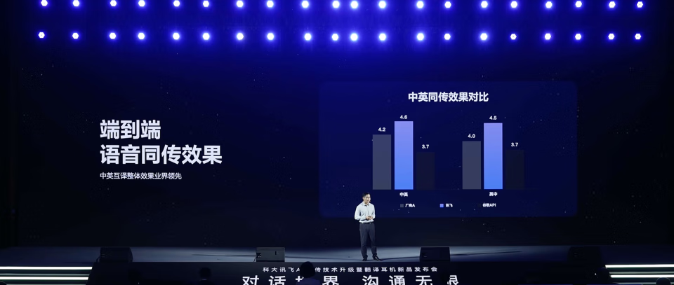基于星火,科大讯飞打造的端到端同传技术业内领先,已在WAIC、东盟博览会等国际会议上广泛应用。