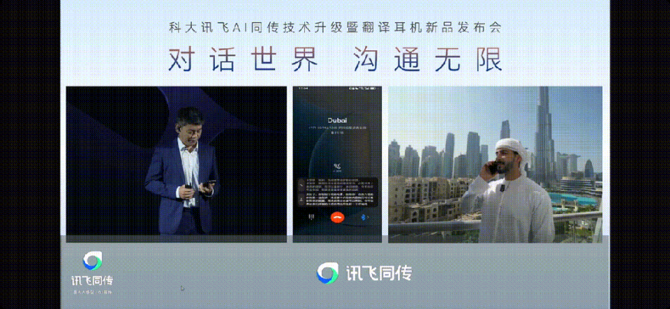 发布会现场,主讲人戴上那副翻译耳机,向迪拜友人发出的问候,瞬间被清晰转译。