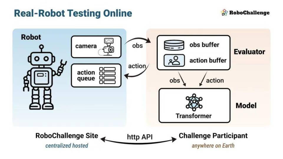 RoboChallenge 通过创新的「远程机器人」方法,为学术界和产业界提供高精度、易用、免费的在线机器人测试服务。该平台最大的特点之一是以云端化服务突破机器人测试的硬件资源限制,实现「没有机器人,一样做实验」的效果,为具身智能研究提供高效、可靠的算法验证环境。