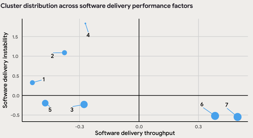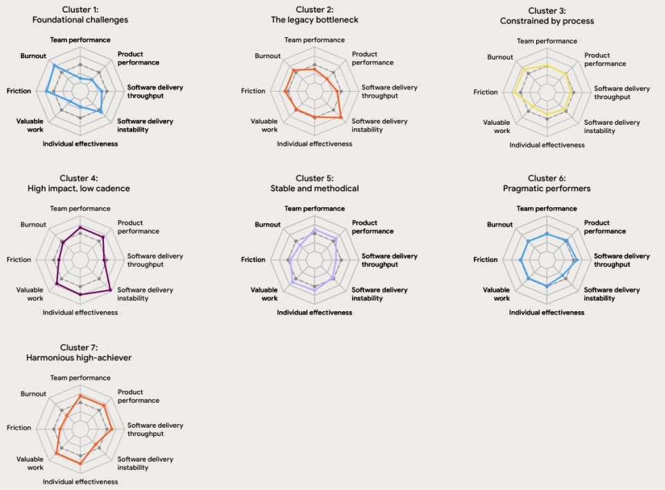 在今年的DORA报告里,研究者把近五千个团队的画像汇总成了七种「典型人设」。