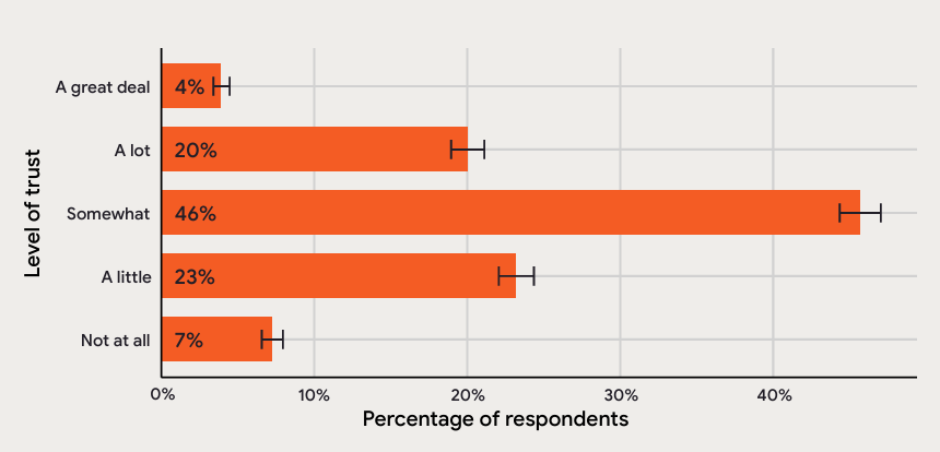开发者对AI输出结果的信任分布