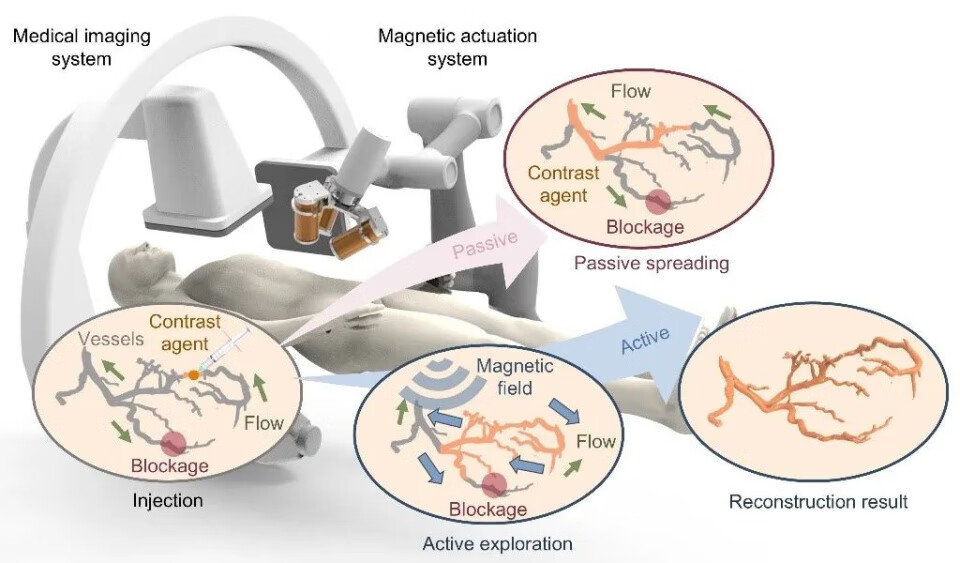 为解决上述问题,研究团队利用微型机器人集群,开发了一种主动型的造影剂,利用磁场引导集群运动,借助于所开发的一系列算法和逻辑,可以自主地探索和精准定位全部的血管网络。
