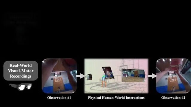 想象你是怎么打篮球的?你需要从第一人称视角去感知球的位置,同时迅速准备好起跳或拦截的动作,并不断预判不同动作对球场局势的影响。而每做出一个动作又会反过来改变环境,触发新一轮的感知 - 行动 - 预测循环。这一循环在人类的成长早期就开始了,婴儿通过在真实世界中不断地观察与交互,形成一个高度耦合的视觉 - 动作系统。这一系统比语言系统更早 “上线”—— 人类在会说话之前,就已经能通过感知和行动来理解和改变周围环境。然而,在 AI 领域,对这一系统的学习却落后于语言模型的发展。