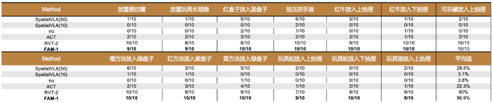 基于 BridgeVLA 的创新架构,中科第五纪将 FAM-1 在国际公开评测基准 RLBench、Colosseum 等与微软、MIT、斯坦福等顶尖团队工作进行了公开比较,大量实验结果验证了模型的优越性。