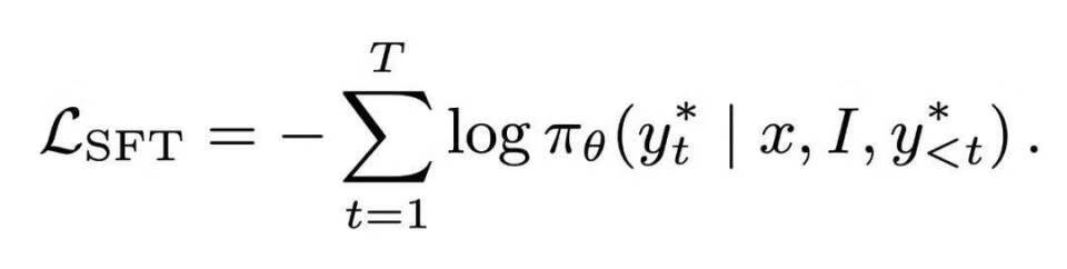 训练目标方面,苹果采用标准的因果语言建模(Causal LM)目标函数。给定一个多模态输入 (x, I),其中包括文本问题和对应图像、以及包含完整推理过程、工具调用和最终答案的多轮对话 y*,训练中的模型在给定所有前文 token 的条件下预测目标序列中的每一个 token。