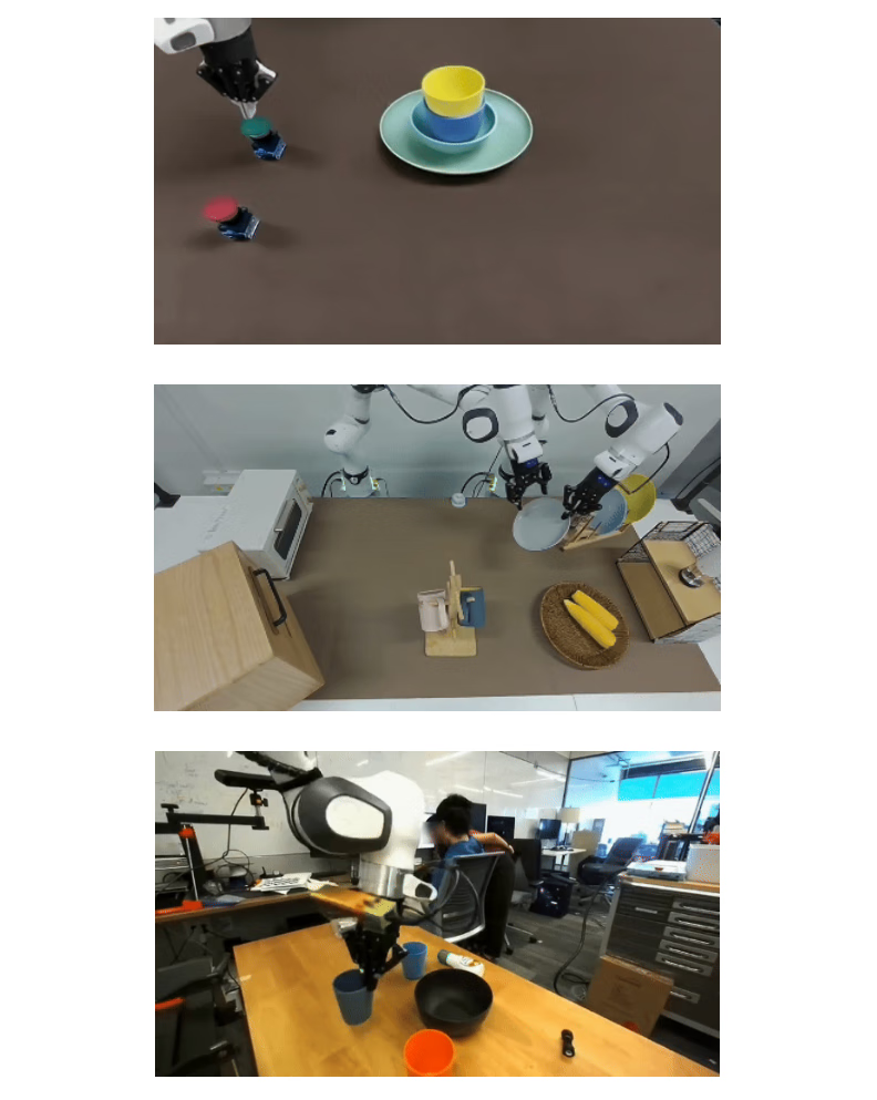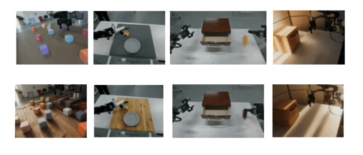 系统可在虚拟空间中完成 “想象 → 生成 → 再标注 → 迁移” 的自循环过程。首先从少量真实交互样本出发,自动合成成千上万条物理一致的视觉 - 动作数据,然后通过多模态控制,实现不同任务类型、环境风格与相机视角的多样化生成。并且这种生成支持视觉风格迁移与 VLA 数据同步合成,从而提升策略学习与视觉推理的泛化能力。