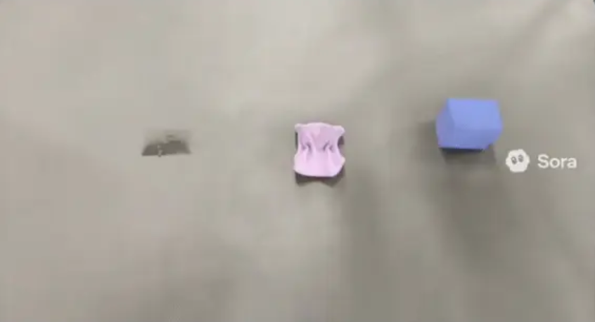 Sora 2 生成依次抓取火方块,柔性方块,水方块