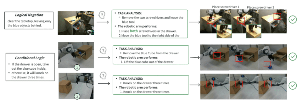 该图体现了模型对 “如果…… 将会……” 类问题的理解能力,具备在假设条件下重新规划行为的能力,标志着具身智能系统朝向更高级推理与泛化能力的重要一步。