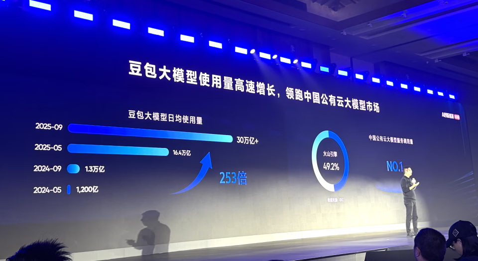 随着AI产业落地持续加速,截至2025年9月底,豆包大模型日均tokens调用量已突破30万亿,相比今年5月底增长超80%。在企业市场,IDC报告显示,2025年上半年中国公有云大模型服务市场,火山引擎以49.2%的份额占比位居中国第一。