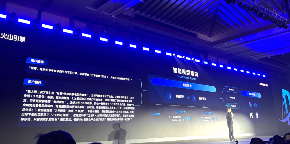 现场媒体问答环节,谭待强调算力和客户覆盖并不存在直接等式关系,“模型能力强弱才是穿透更多行业的关键变量。” 在企业落地层面,豆包大模型 1.6 的“思考长度分档”叠加火山方舟的智能模型路由,一端降低时延与成本,一端简化模型选择与编排难度;针对企业常见的管理痛点,还通过 HiAgent “1 + N + X” 统一入口,解决多 Agent 并行带来的知识库与既有系统集成问题。