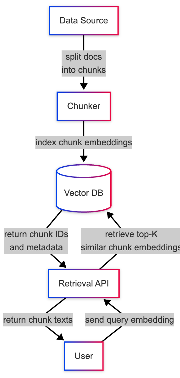 当用户提出查询时,系统计算查询的嵌入,并从数据库中找出最相似的 k 个区块作为上下文,提供给 LLM 以生成答案。