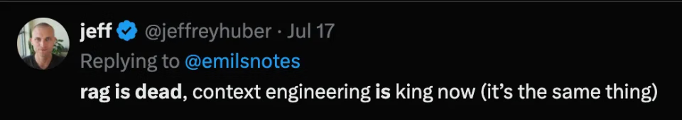 向量数据库 Chroma 创始人兼 CEO Jeff Huber 在播客与访谈中抛出「RAG 已死,上下文工程当立」的表述,主张以上下文工程框架取代对「RAG」这一术语的狭义依赖。