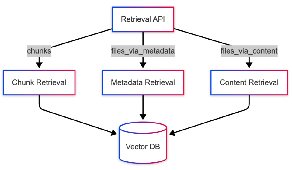 files_via_metadata:当查询明确提及文件名或路径时(例如,「2024_MSFT_10K.pdf 这份文件说了什么?」),此模式直接检索整个文件。
