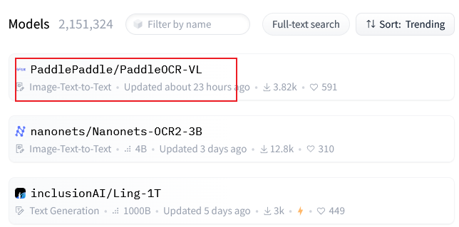 这个叫作PaddleOCR-VL的模型,发布不到一天,就在技术圈的开源社区Hugging Face上冲到了全球热度榜首。现在仍然霸榜。