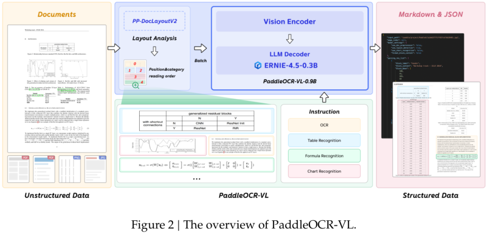 PaddleOCR-VL通过巧妙的两阶段架构设计,在性能和效率之间取得了出色的平衡,为资源受限环境下的多模态文档解析应用,提供了一个极具吸引力的解决方案。
