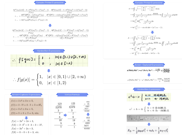 团队系统性地收集整理了领域内成熟的公开数据集,比如文本内容来自CASIA-HWDB,数学公式来自UniMER-1M,图表数据来自ChartQA,PlotQA等。这些数据构成了训练集的基础,并且都经过了初步的清洗和筛选。
