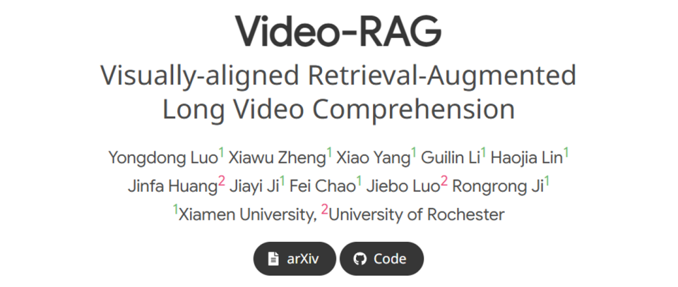 尽管视觉语言模型(LVLMs)在图像与短视频理解中已取得显著进展,但在处理长时序、复杂语义的视频内容时仍面临巨大挑战 —— 上下文长度限制、跨模态对齐困难、计算成本高昂等问题制约着其实际应用。针对这一难题,厦门大学、罗切斯特大学与南京大学联合提出了一种轻量高效、无需微调的创新框架 ——Video-RAG。该研究已被机器学习顶级会议 NeurIPS 2025 接收,为长视频理解任务提供了全新的解决思路。