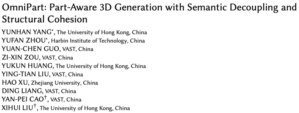 在3D内容创作领域,如何像玩乐高一样,自由生成、编辑和组合对象的各个部件,一直是一个核心挑战。香港大学、VAST、哈尔滨工业大学及浙江大学的研究者们联手,推出了一个名为 OmniPart 的全新框架,巧妙地解决了这一难题。该研究已被计算机图形学顶会 SIGGRAPH Asia 2025 接收。
