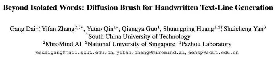 论文标题:Beyond Isolated Words: Diffusion Brush for Handwritten Text-Line Generation