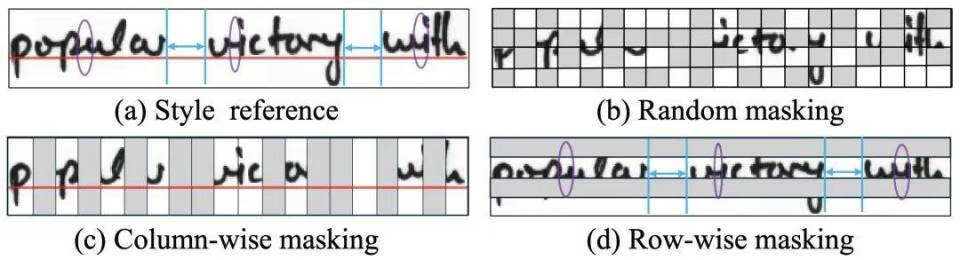 (a) 内容解耦的风格模块。为避免内容学习对风格学习造成干扰,DiffBrush 提出内容解耦的风格模块,让模型仅关注字符风格。一个较为直接的解耦方法是对图像进行掩码破坏,那么如何设置掩码比较好呢?