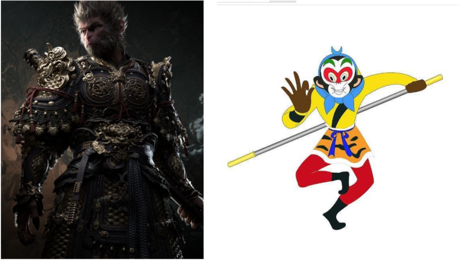 比如,当经典动画「孙悟空」形象遇上《黑神话》中的孙悟空: