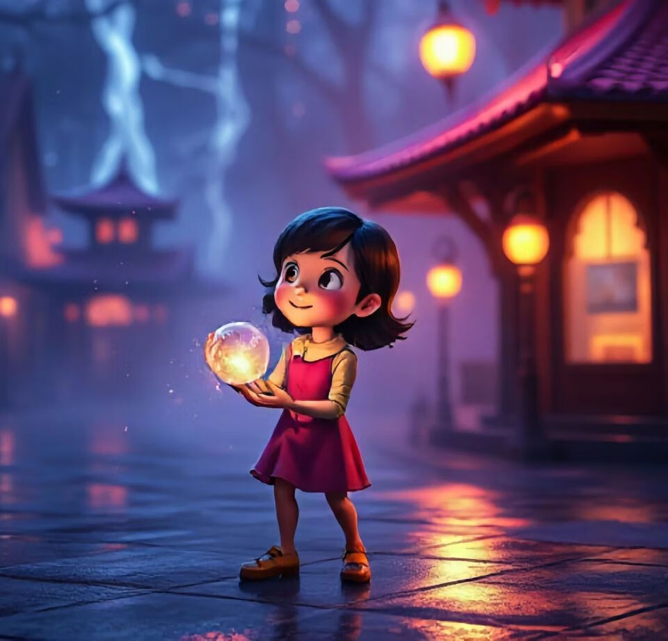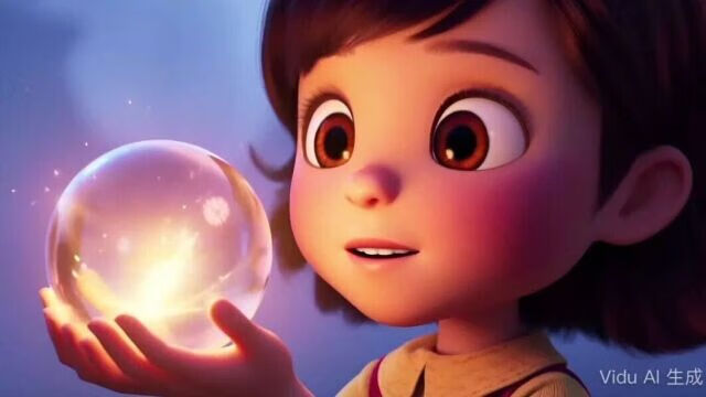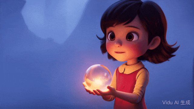 上传一张图片后,让镜头拉近,小女孩手中水晶球发光,可以看到人物一致性非常高。
