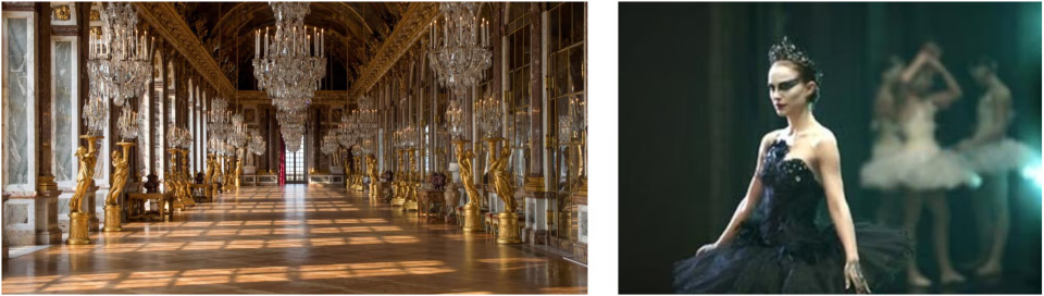 提示词:[@图2]慢慢的从[@图1]长廊的尽头走向镜头,靠近镜头露出迷人的微笑,镜头固定不变,长镜头效果