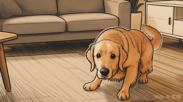 Sora 2生成的视频中,金毛在跳上沙发一瞬间,狗头严重变形;而Vidu Q2不仅更流畅,金毛始终没有「崩坏」。