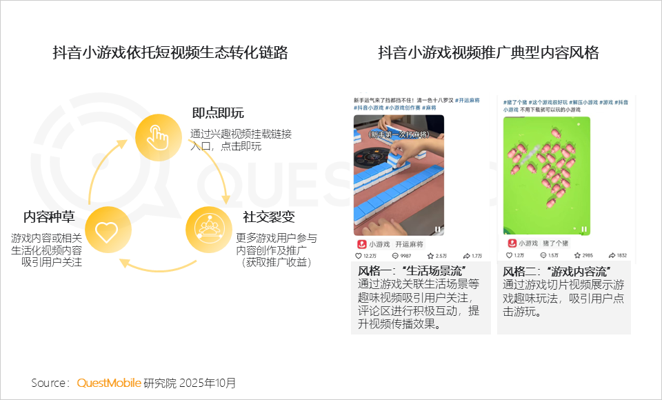 5、抖音小游戏依托短视频生态实现流量转化,平台已形成“内容种草—即点即玩—社交裂变”的成熟闭环