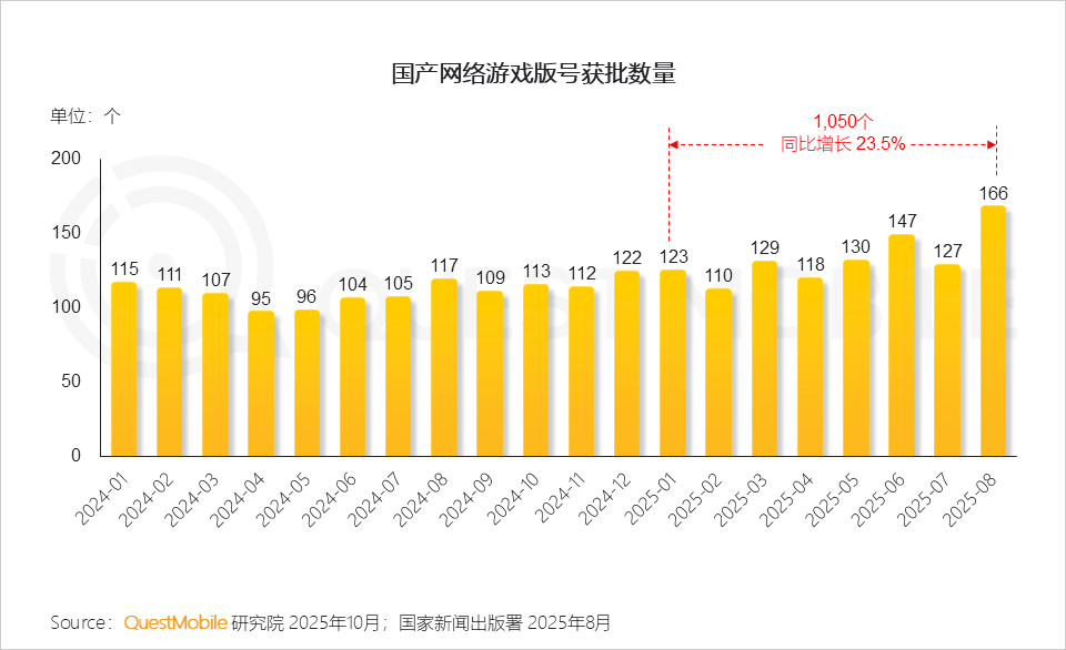 言归正传,今天就给大家分享一下 2025手机游戏行业发展分析。2025年前八个月,国产游戏版号过审数量达到1050个,同比增长了23.5%,精品化趋势和高质量发展态势都很明显,带动了用户量的持续增长。