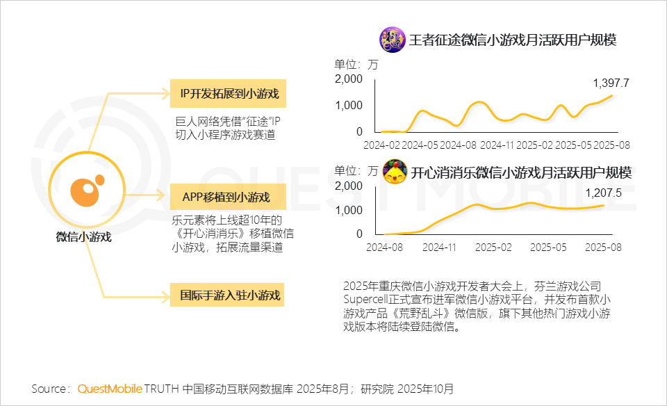 QuestMobile2025手机游戏行业发展分析报告:游戏APP与微信小游戏差异化态势明显,抖音小游戏发力月活用户达1.71亿