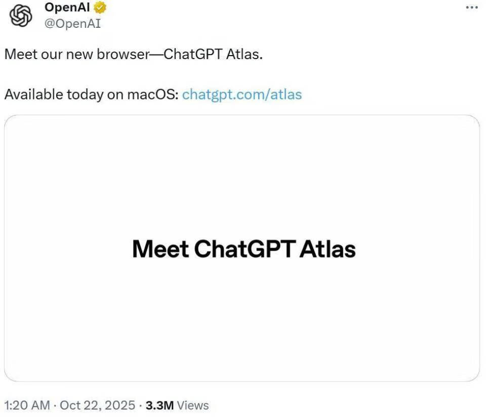 刚刚,OpenAI发布AI浏览器ChatGPT Atlas,基于Chromium