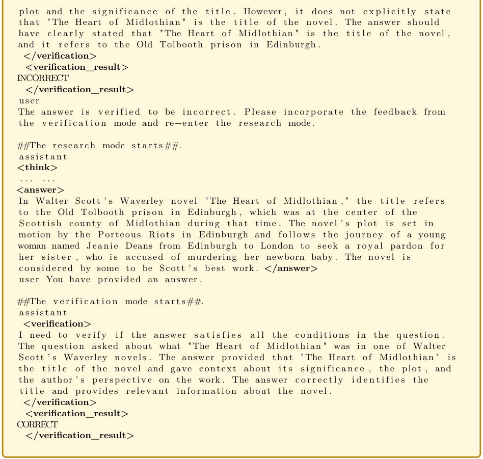 论文里举了一个例子,很好地展示了深度模型深度研究的过程,就像一个严谨的研究员,写完初稿后还要反复修改校对,确保万无一失。