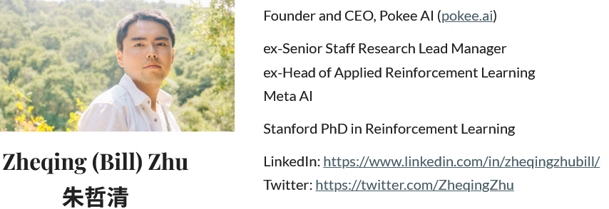 创始人兼CEO朱哲卿,是斯坦福大学的博士,在Meta干了七年多,是应用强化学习团队的主管。