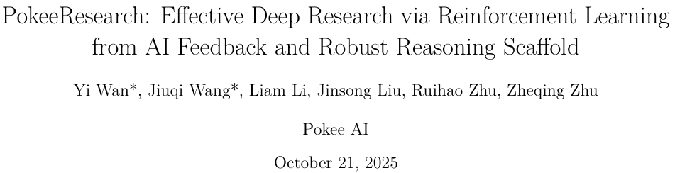Pokee AI团队发表的这篇论文,介绍了他们研发的深度研究智能体:PokeeResearch-7B。
