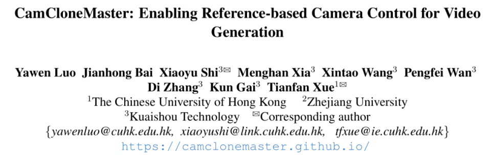 SIGGRAPH Asia 2025|电影级运镜一键克隆!港中文&快手可灵团队发布CamCloneMaster