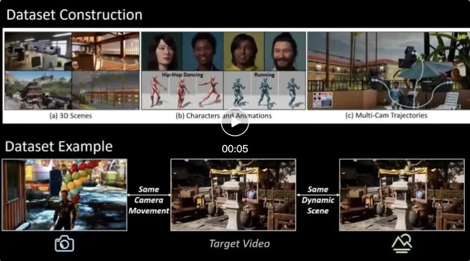 数据配对:数据集的关键特性是提供了大量的三元组视频——运镜参考视频、内容参考视频以及目标视频。