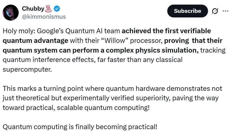 有网友认为这项研究标志着量子硬件不仅在理论上,而且在实验中都展现出卓越的优势,为实用且可扩展的量子计算铺平了道路!量子计算终于走向实用!