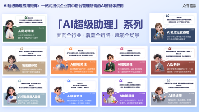 理念下沉到场景中,「甲子光年」观察到,众安信科的AI超级助理系列Agent正在嵌入到企业经营的前中后全链路,将传统人力“外包”给AI智能,为企业提供批量化、标准化的超级个体,来实现业务价值的规模化产出。