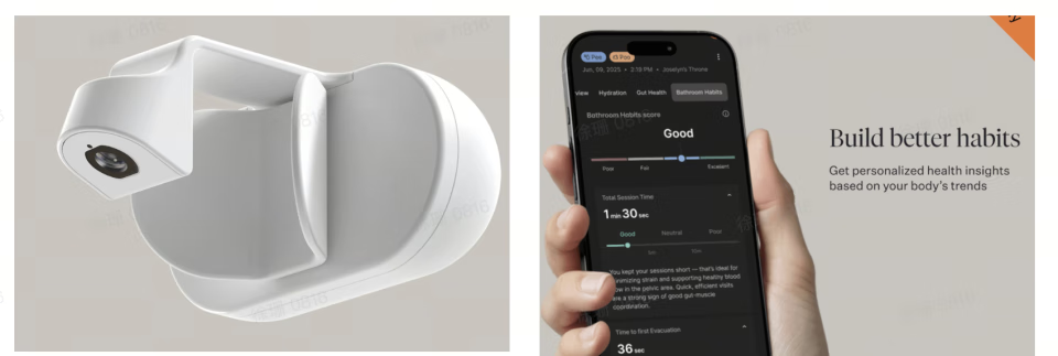 Kohler 并不是第一个想要进行马桶革命的玩家。早在 2024 年,一家奥地利初创 Throne 就曾打造过一款摄像头,可以夹在马桶边上,拍摄排泄物。