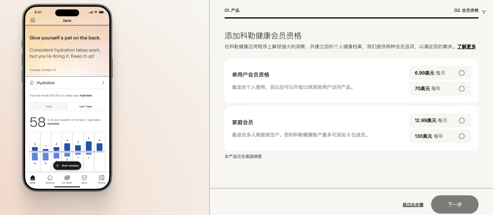 KohlerHealth 订阅价格 来源:Kohler 官网
