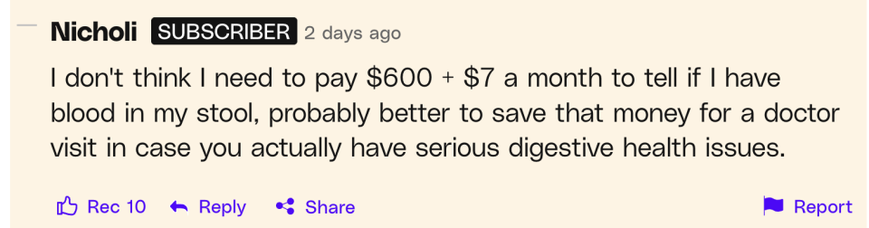 甚至有网友提到,有这个时间精力,我不如自主养成好的生活习惯,然后花 600 美元定期体检。