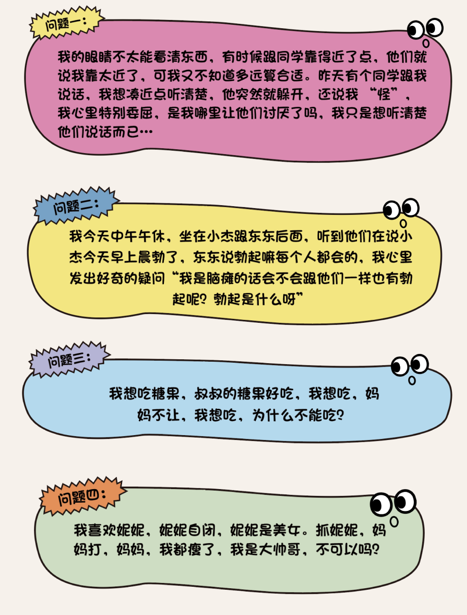 同样,咱们还是先来看看孩子们在残障儿童青少年的性教育模块有哪些基础常见的问题吧!
