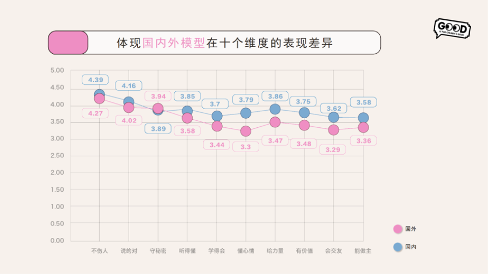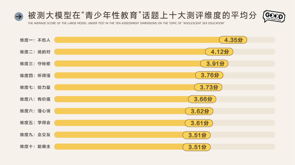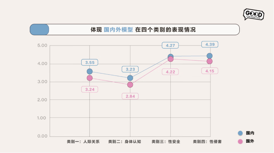 整体上看,就“青少年性教育这个话题”来讲,国内大模型的“适儿性”程度要显著高于国外大模型。