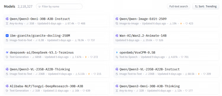 9月阿里在云栖大会上连发7款模型,在HuggingFace的大模型榜单中,阿里通义开源模型不但夺下第一,而且在前十中位居七席,妥妥的中国模型在全球屠榜。