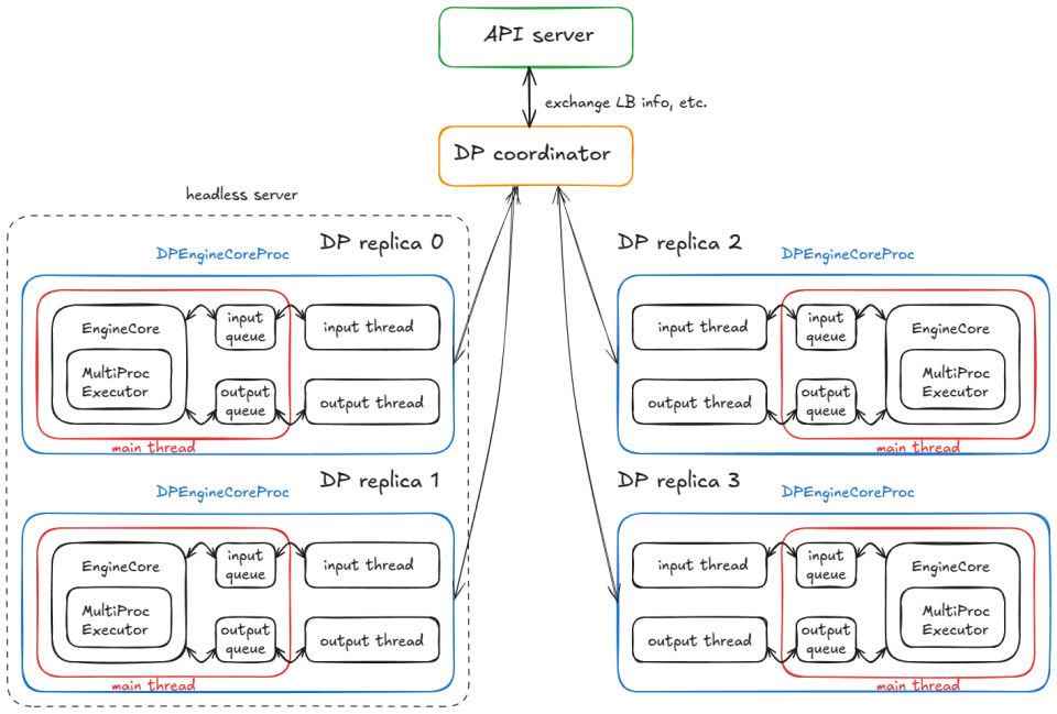 DP 协调器在前端(API 服务器)与后端(引擎核心)之间进行中介: