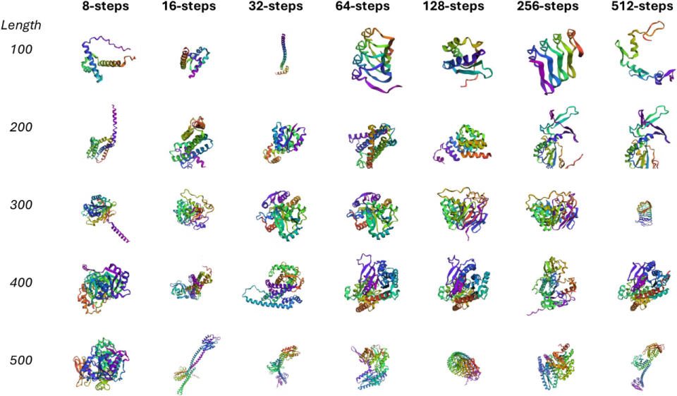 由 DiDi-Instruct 蒸馏得到的学生模型生成的 高置信度蛋白质序列(pLDDT > 70)。