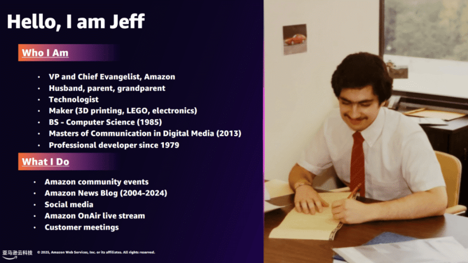 从 2004 年写下第一篇博客,到 2025 年在上海畅谈智能体,Jeff Barr 的职业生涯完美诠释了他所扮演的三个角色。
