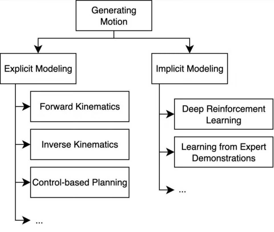 从显式建模到隐式建模的演化,标志着机器人运动生成方式的一次根本性变革。传统机器人技术依赖显式建模,通过正向运动学、逆向运动学以及基于控制的规划来生成动作;而基于学习的方法则通过深度强化学习和专家示范学习,实现了隐式建模。